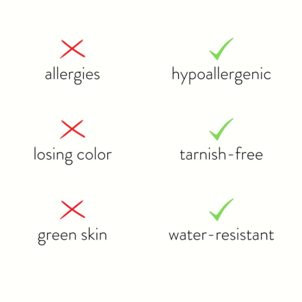 Hergestellt aus wasserdichtem Edelstahl, müssen Sie sich nie wieder Sorgen um verblassten oder angegriffenen Schmuck machen.