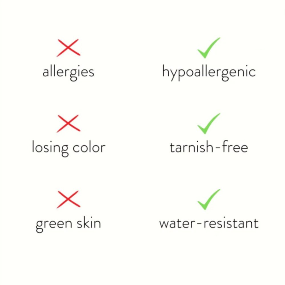 Hergestellt aus wasserfestem Edelstahl, müssen Sie sich nie wieder Sorgen über das Verblassen oder Oxidieren von Schmuck machen.