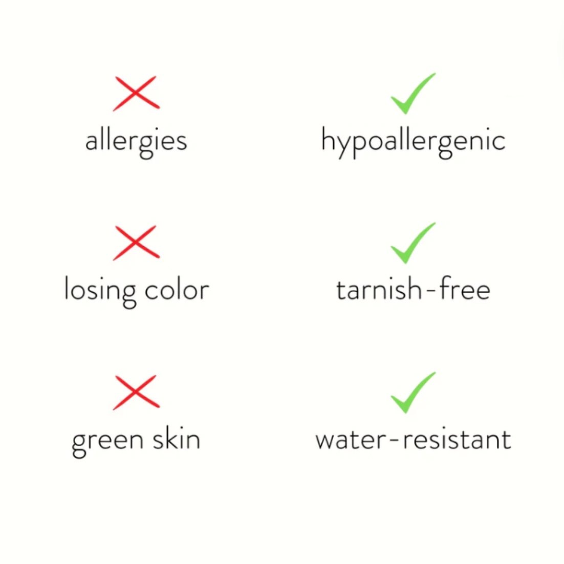 Hergestellt aus wasserdichtem Edelstahl musst du dir nie wieder Sorgen um das Verblassen oder Oxidieren von Schmuck machen.