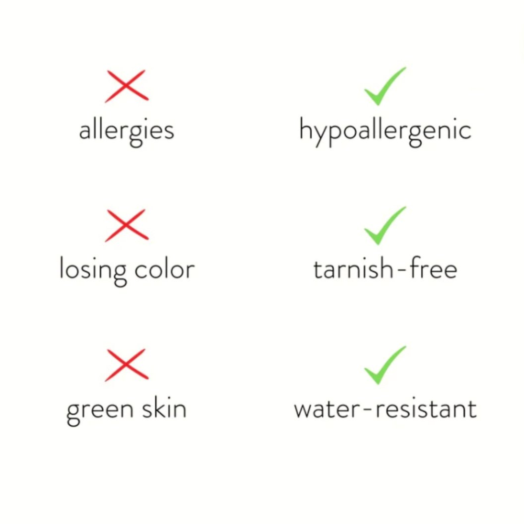 Hergestellt aus wasserdichtem Edelstahl, müssen Sie sich nie wieder Sorgen um das Verblassen oder Anlaufen von Schmuck machen.